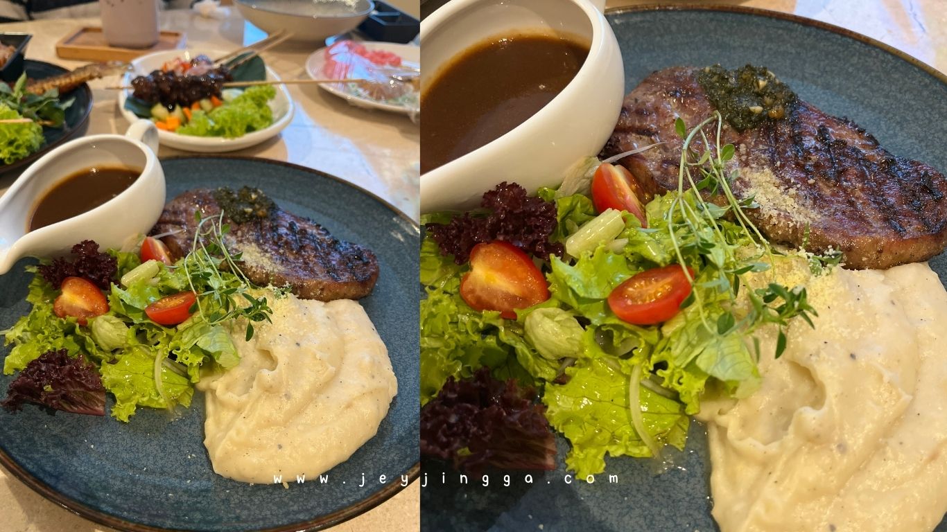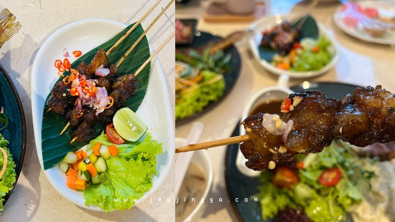 Saat itu saya memesan mie goreng (comfort foodnya bocil), ginger frizz yang cocok untuk tenggorokan sang suami yang malamnya harus jadi imam, sate lemak dengan porsi dan komposisi yang pas (tidak terlalu pedas dan bumbunya meresap banget), lalu ayam krispi sambal embe yang enak banget dijadiin snack setelah tarawih (karena saya bawa pulang), ditambah kakap bakar bumbu jimbaran, nasi putih dan shirloin steak welldone yang bikin anak dan suami saya ngga berhenti mengunyah. Semuanya habis dilahap!