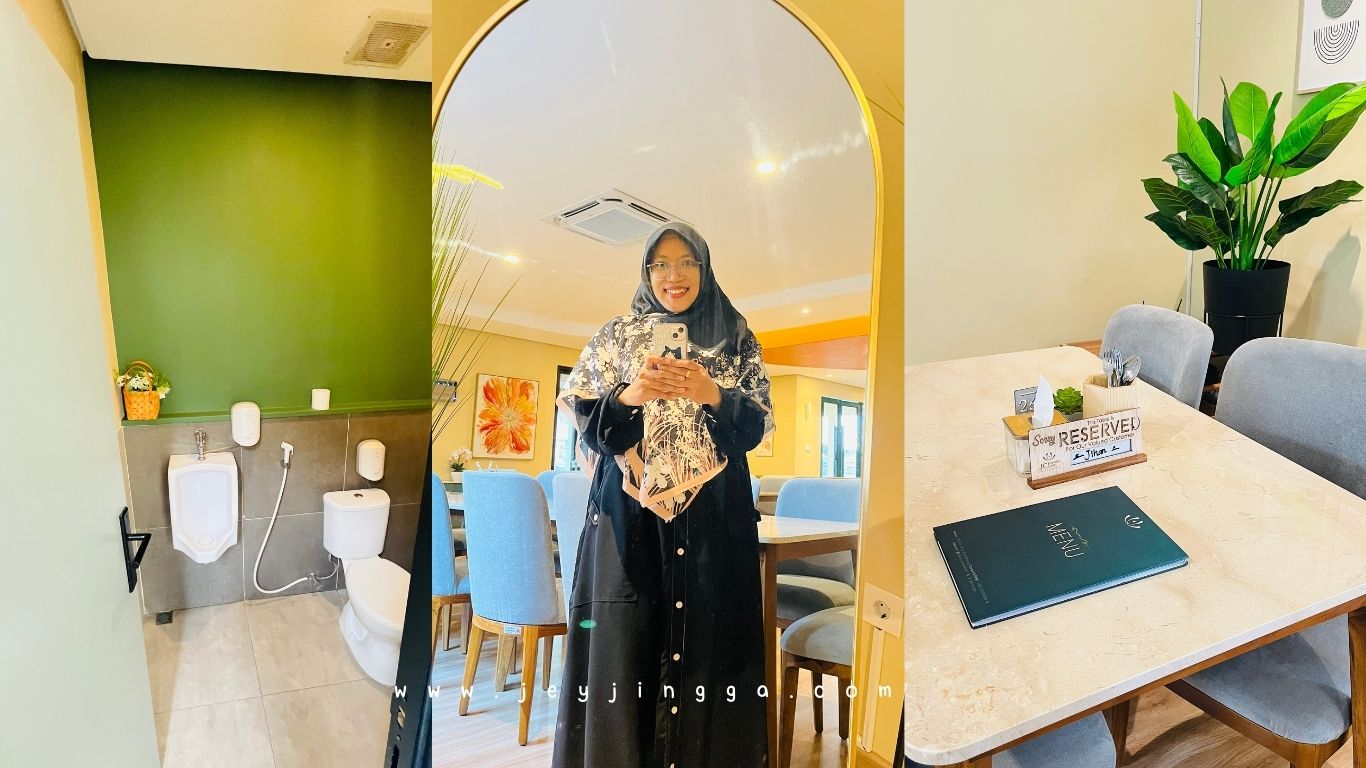 Untuk yang membawa anak, ada fasilitas playground di lantai 1 dan beberapa spot foto menarik yang instagramable. Ditambah fasilitas ibadah (musholla) yang proper dengan toiletnya yang bersih dan wangiiii! Ini salah satu indikator cafe nyaman menurut saya sih, kalau toiletnya bersih insya Allah dapurnya juga pasti bersih dan higienis. Bare minimum yang selalu saya perhatikan setiap singgah ke cafe atau resto.